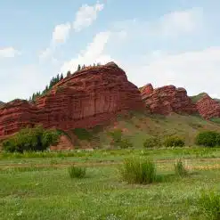 Déjeuner dans une famille locale. Après le déjeuner, transfert à la gorge Djety Oguz. Une gorge pittoresque, couverte de sapin de Tien Shan. Votre guide vous racontera la légende sur l’origine du nom de la gorge.